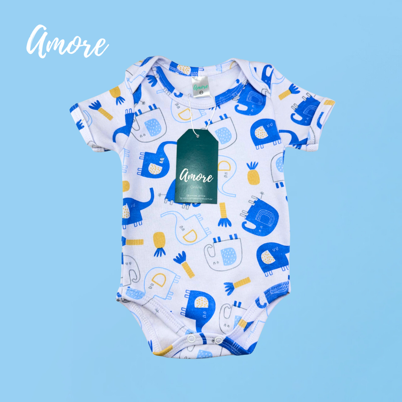 Body Manga Curta Elefante Azul
