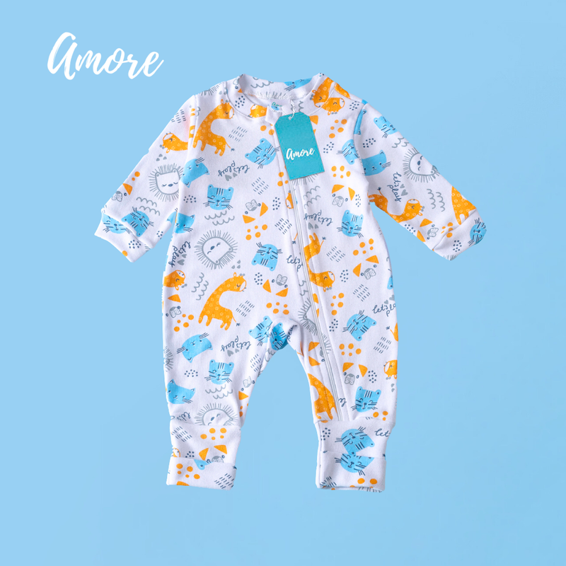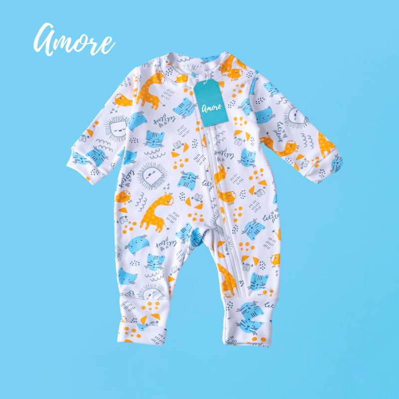 Seu bebê merece esse conforto! O Macacão Vira Pé com Ziper e protetor de Ziper é uma exclusividade da Amore pensada especialmente para os pequenos. São macias e confortáveis, feitas com tecido 100% algodão, para tornar o dia do seu amor mais alegre e cheio de estilo.