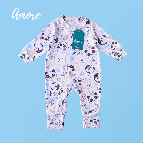 Macacão de Bebê Amore Vira Pé Animais Com Zíper 100% Algodão
