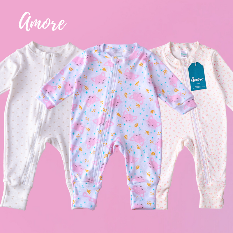 O Combo Macacão Vira Pé com Ziper e protetor de Ziper é uma exclusividade da Amore pensada especialmente para os pequenos. São 3 Macacões confortáveis, feitas com tecido Suedine 100% algodão, para tornar o dia do seu amor mais alegre e cheio de estilo.
