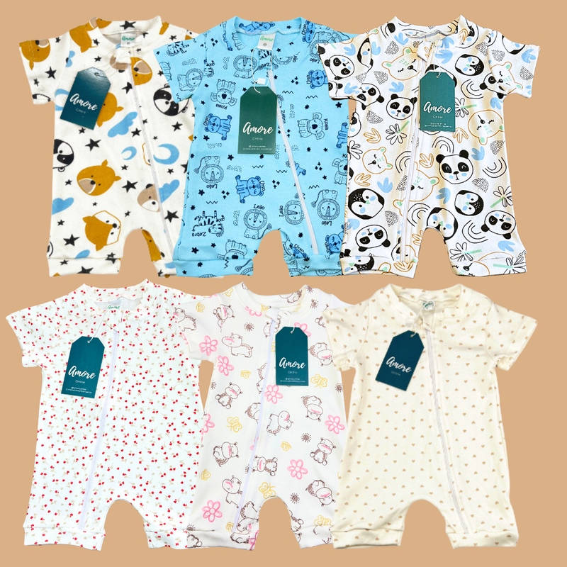 O Macacão Curto e protetor de Ziper é uma exclusividade da Amore pensada especialmente para os pequenos. São macias e confortáveis, feitas com tecido em Suedine 100% algodão, para tornar o dia do seu amor mais alegre e cheio de estilo.