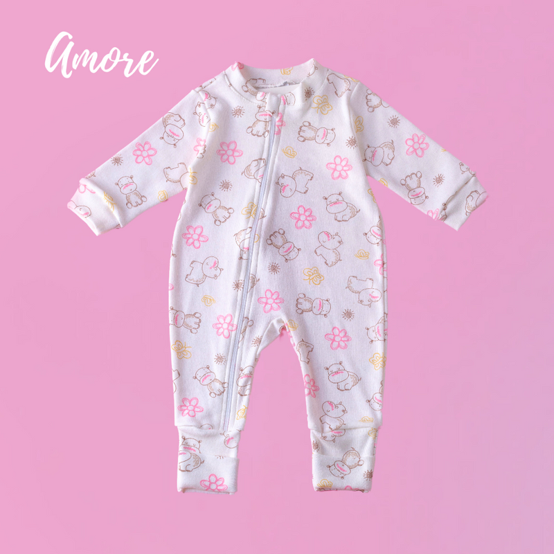 Seu bebê merece esse conforto! O Macacão Vira Pé com Ziper e protetor de Ziper é uma exclusividade da Amore pensada especialmente para os pequenos. São macias e confortáveis, feitas com tecido Suedine 100% algodão, para tornar o dia do seu amor mais alegre e cheio de estilo.